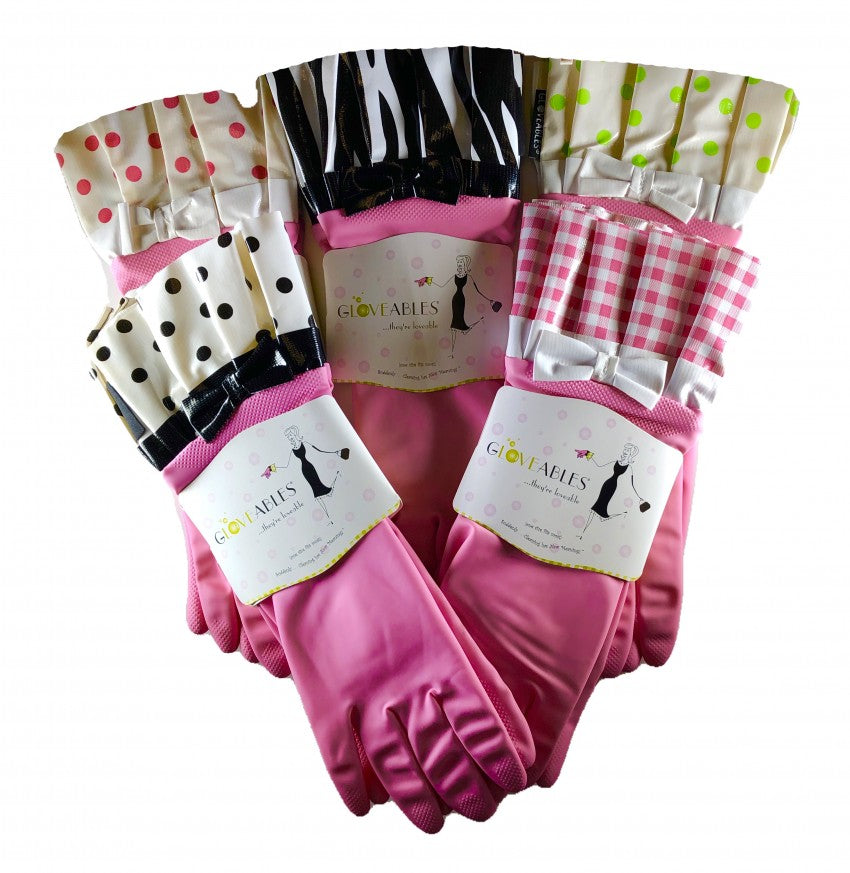 Gloveables Cleaning gloves give cleaning new meaning! Gloveables are the perfect way to protect your hands while still being fashionable. They make even the most boring job fun! Gloveables latex dishwashing gloves are ideal for cleaning, dishwashing, gardening, washing the car and anything else that could spoil your manicure. If you care about your beautiful hands you will want Gloveables.